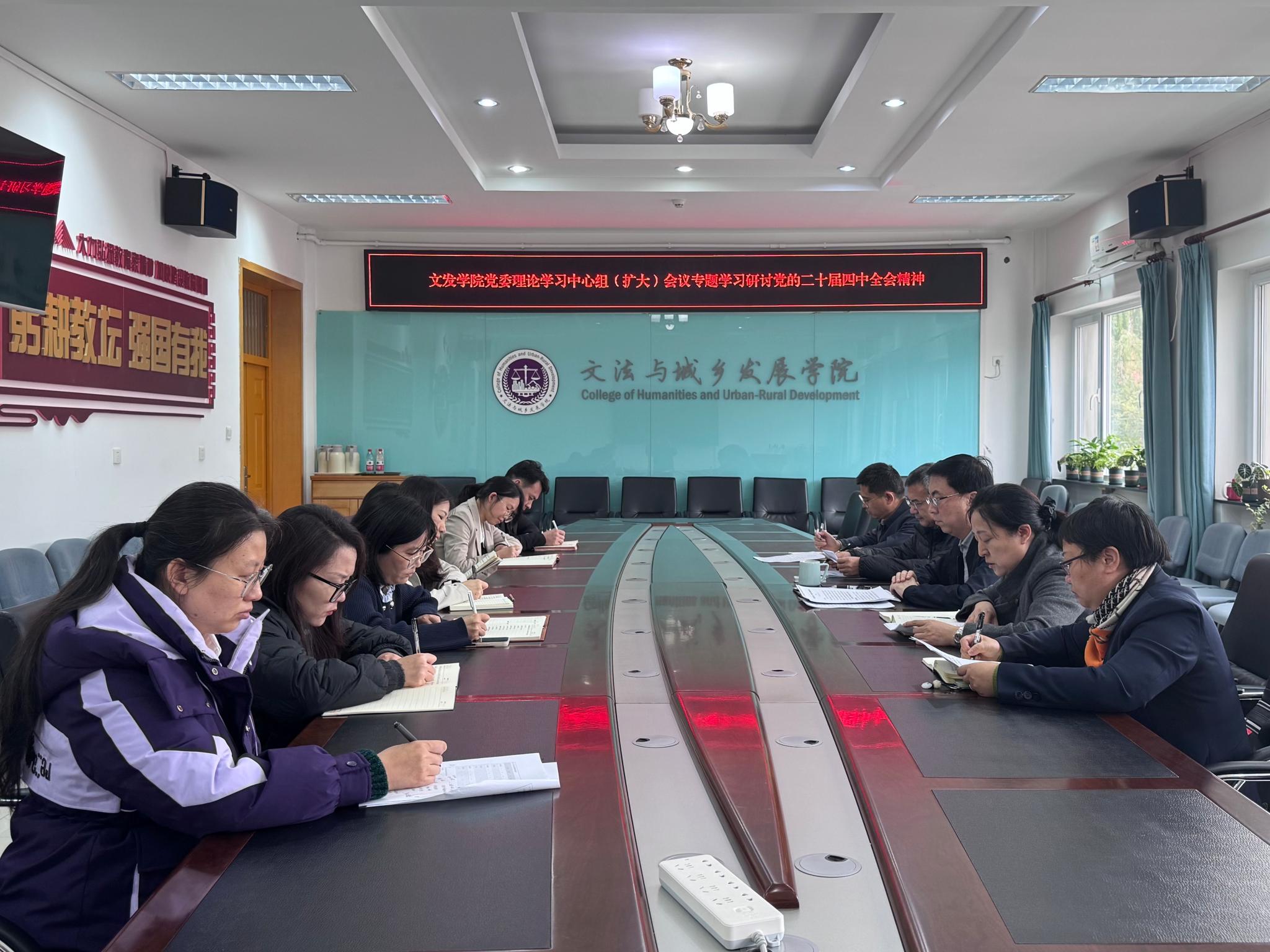 召开党委理论学习中心组(扩大)会议专题学习研讨党的二十届四中全会精神。中心组成员紧密围绕贯彻落实全会精神,扎实推进学院工作高质量发展,结合岗位工作和分管领域交流学习体会。各党支部书记参加学习。会议由党委书记赵和文主持。