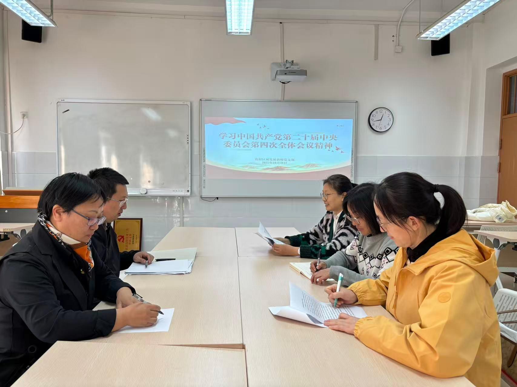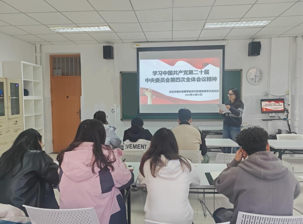 各党支部组织师生党员集体学习了《中国共产党第二十届中央委员会第四次全体会议公报》,深入学习领会党的二十届四中全会提出的新思想新论断新部署。师生党员一致认为,这次全会是在向第二个百年奋斗目标进军的新征程上举行的一次十分重要的会议。全会对“十五五”时期经济社会发展作出顶层设计和战略擘画,为全党全国各族人民把中国式现代化宏伟事业不断向前推进明确了方向和路径。