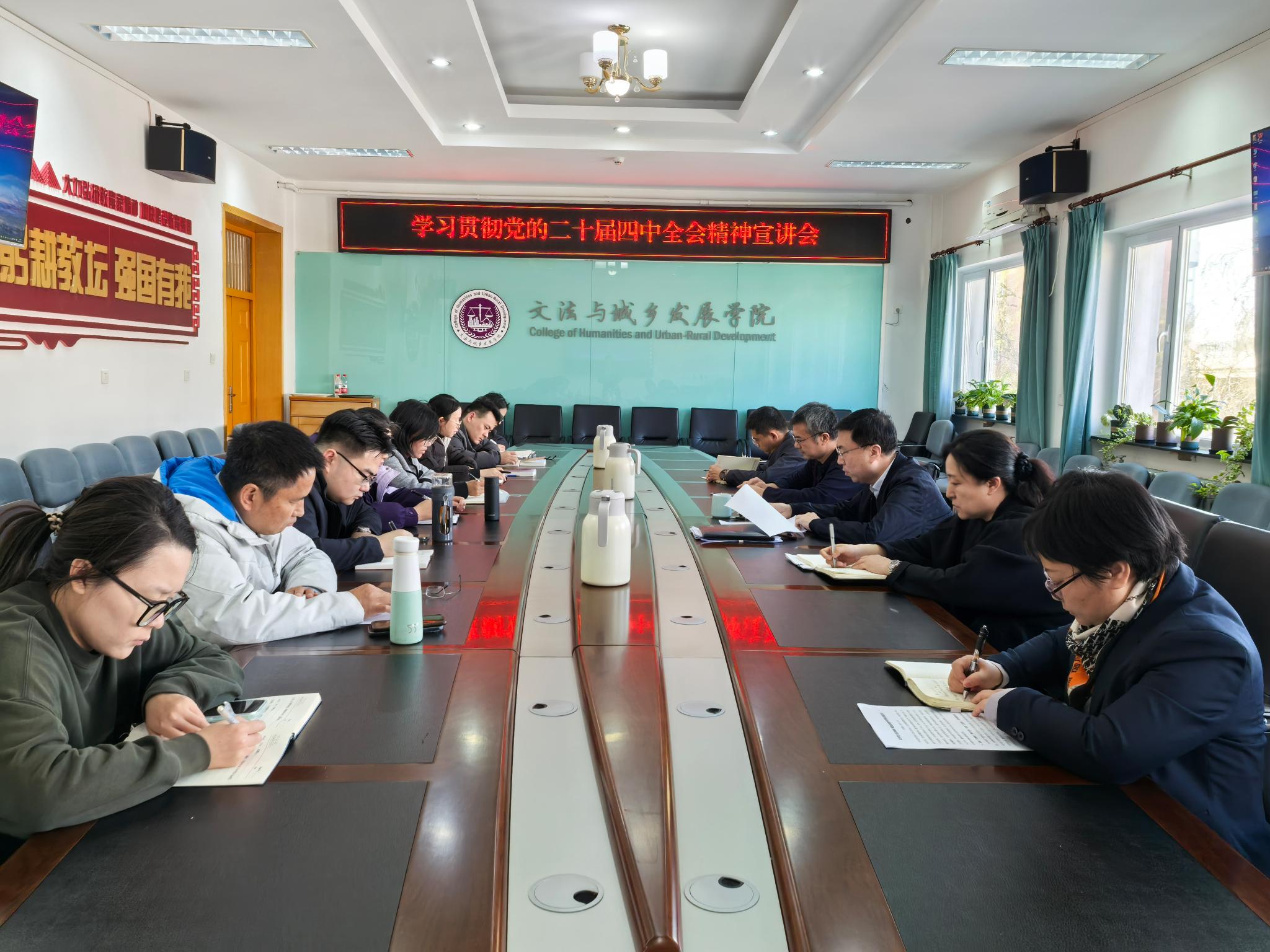 赵和文从提高政治站位,深刻认识党的二十届四中全会的重大历史意义;聚焦核心要义,准确把握党的二十届四中全会精神的实践要求;狠抓贯彻落实,推动党的二十届四中全会精神在学院深入人心、落地生根等方面,对全会精神作了系统宣讲和深入阐释。