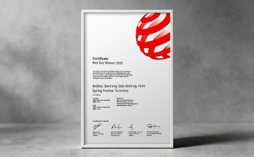 近日,2025年度德国红点品牌与传达设计大奖正式揭晓,由我院毛洋、任晓娜老师联合指导,会展经济与管理专业2025届学生王嘉蕊设计的毕业设计作品《秦城村高跷文化基因图谱及应用》成功获奖。